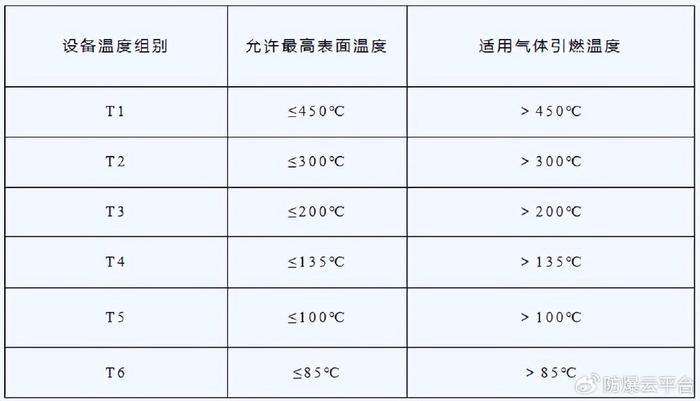 按易燃物質的引燃溫度(自燃溫度),分為六組,具體范圍為: