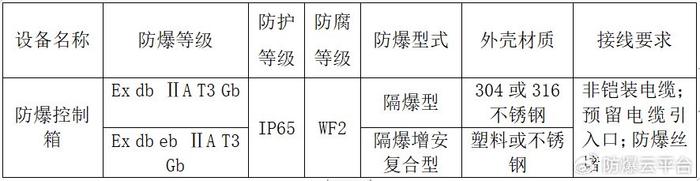 表1、根據(jù)爆炸危險區(qū)域選擇設備保護級別(EPL)和防爆結構
